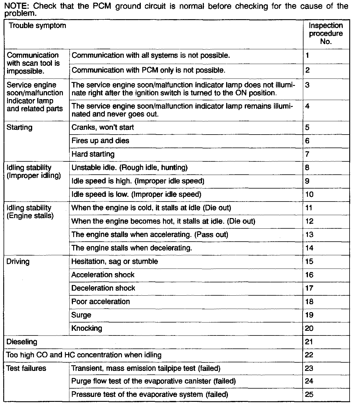Inspection Chart For Trouble Symptoms: