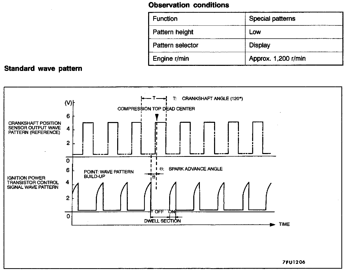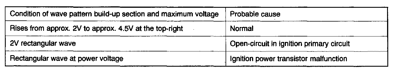 Point: Condition of wave pattern build-up section and maximum voltage (Refer to abnormal wave pattern examples 1 and 2.)