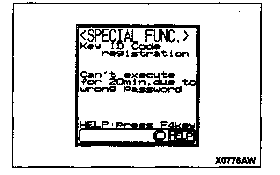 3. If an incorrect password is input five times in a row, this screen is displayed and the immobilizer-ECU switches to "Unauthorized operation, start-prevention mode."