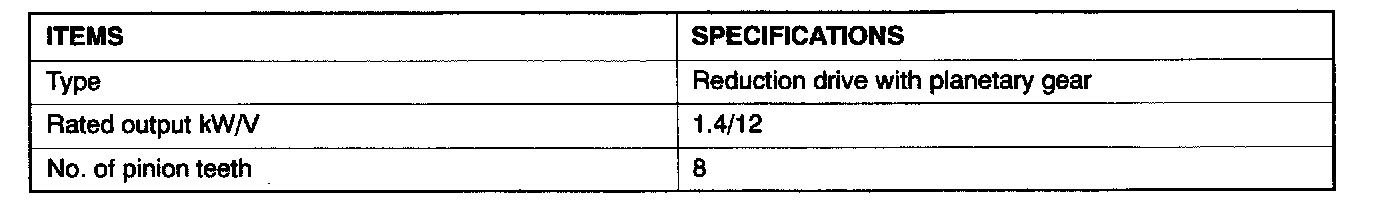General Specifications - Starter Motor: