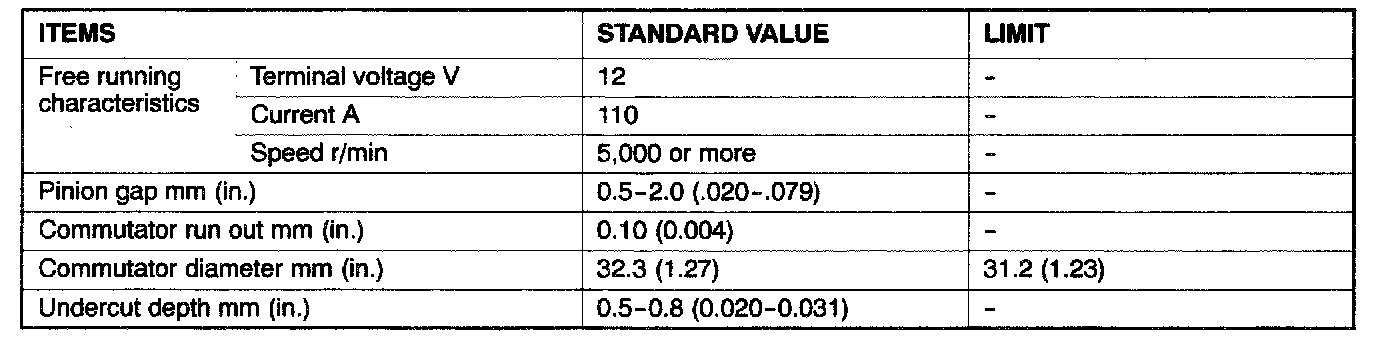 Service Specifications - Starter Motor: