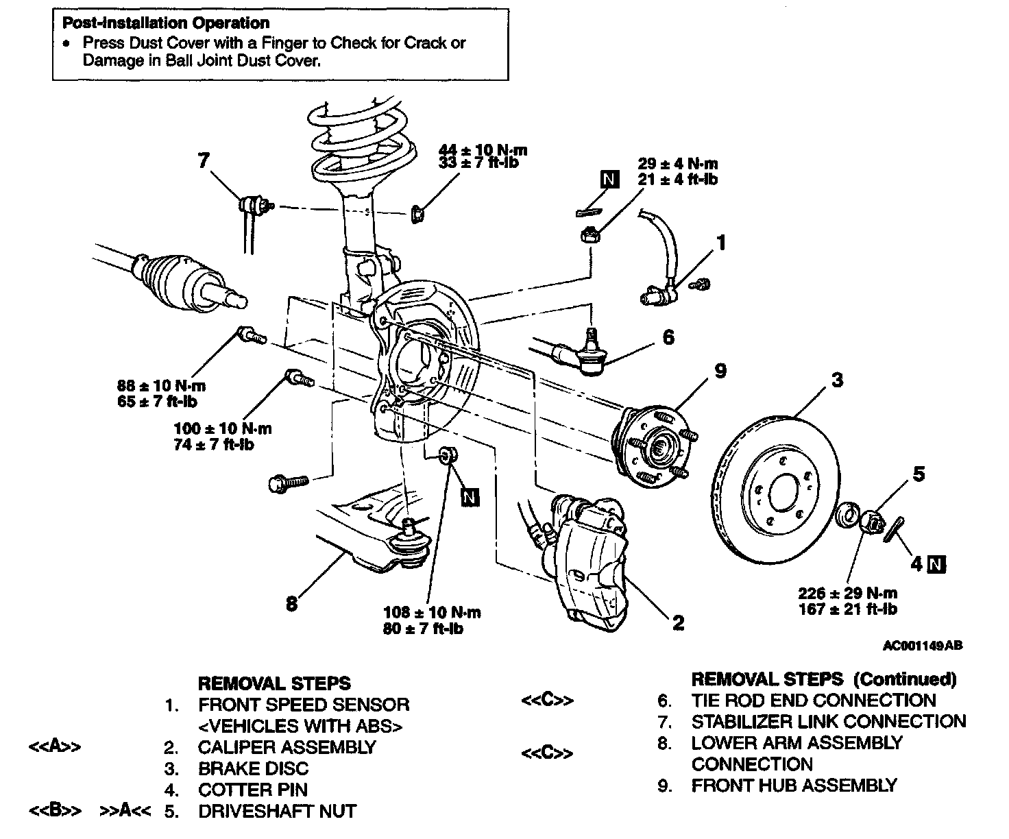 FRONT AXLE HUB ASSEMBLY REPLACEMENT W/ RELATED COMPONENTS