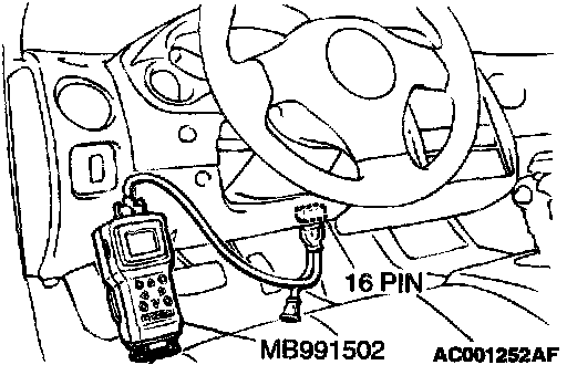 To prevent damage to scan tool MB991502, always turn the ignition switch to the "LOCK" (OFF) position before connecting or disconnecting scan tool MB991502.