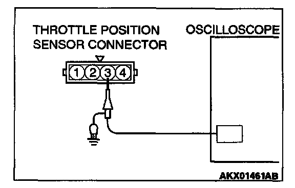 2. Connect the oscilloscope probe to the throttle position sensor side connector terminal 3.
