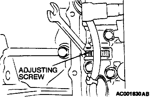 3. Turn the adjusting screw shown in the illustration to adjust the line pressure to the standard value. The pressure increases when the screw is turned to the left.