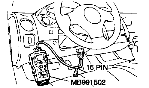 CAUTION: To prevent damage to scan tool MB991502, always turn the ignition switch to the "LOCK" (OFF) position before connecting or disconnecting scan tool MB991502.