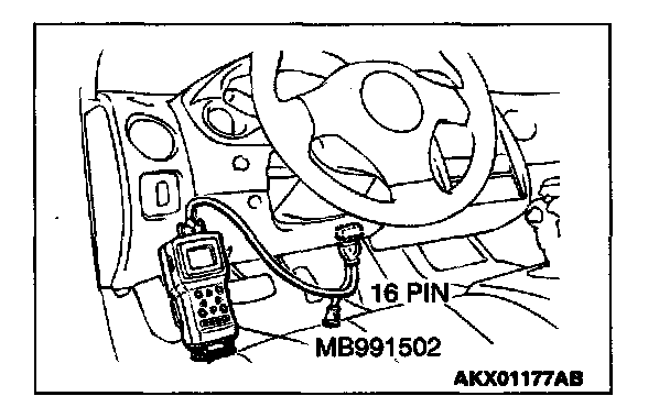 1. Connect scan tool MB991502 to the data link connector.