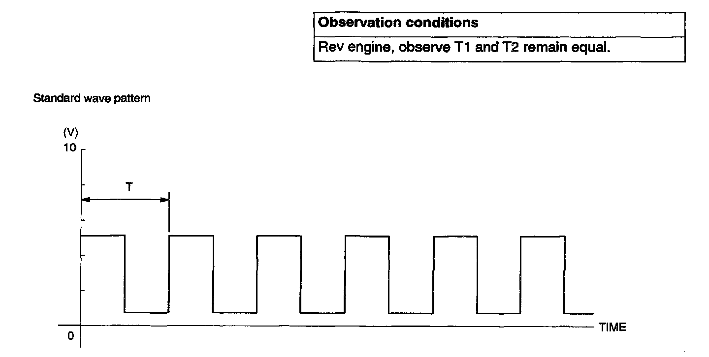 1. Check that cycle time T becomes shorter and the frequency increases when the engine speed is increased.