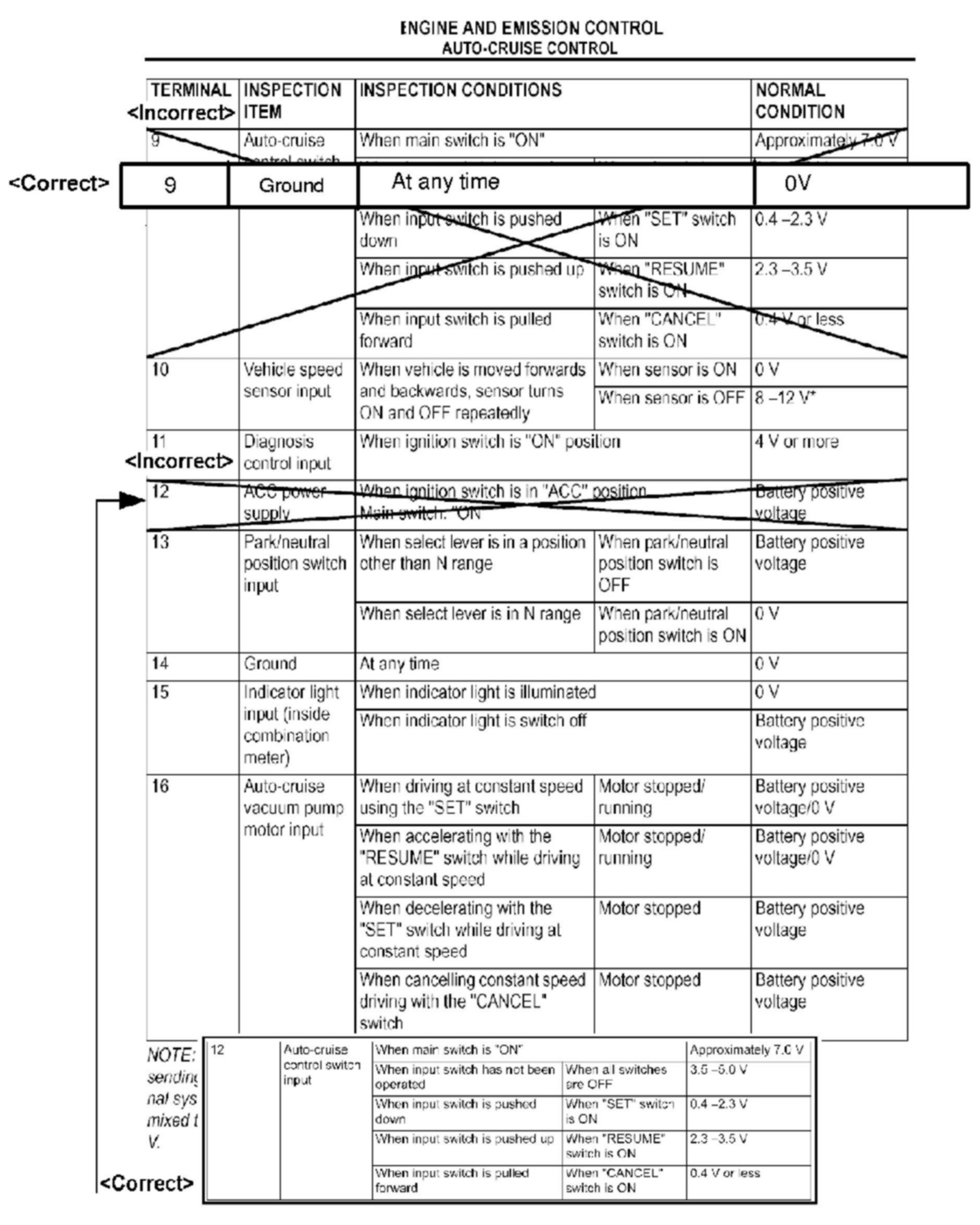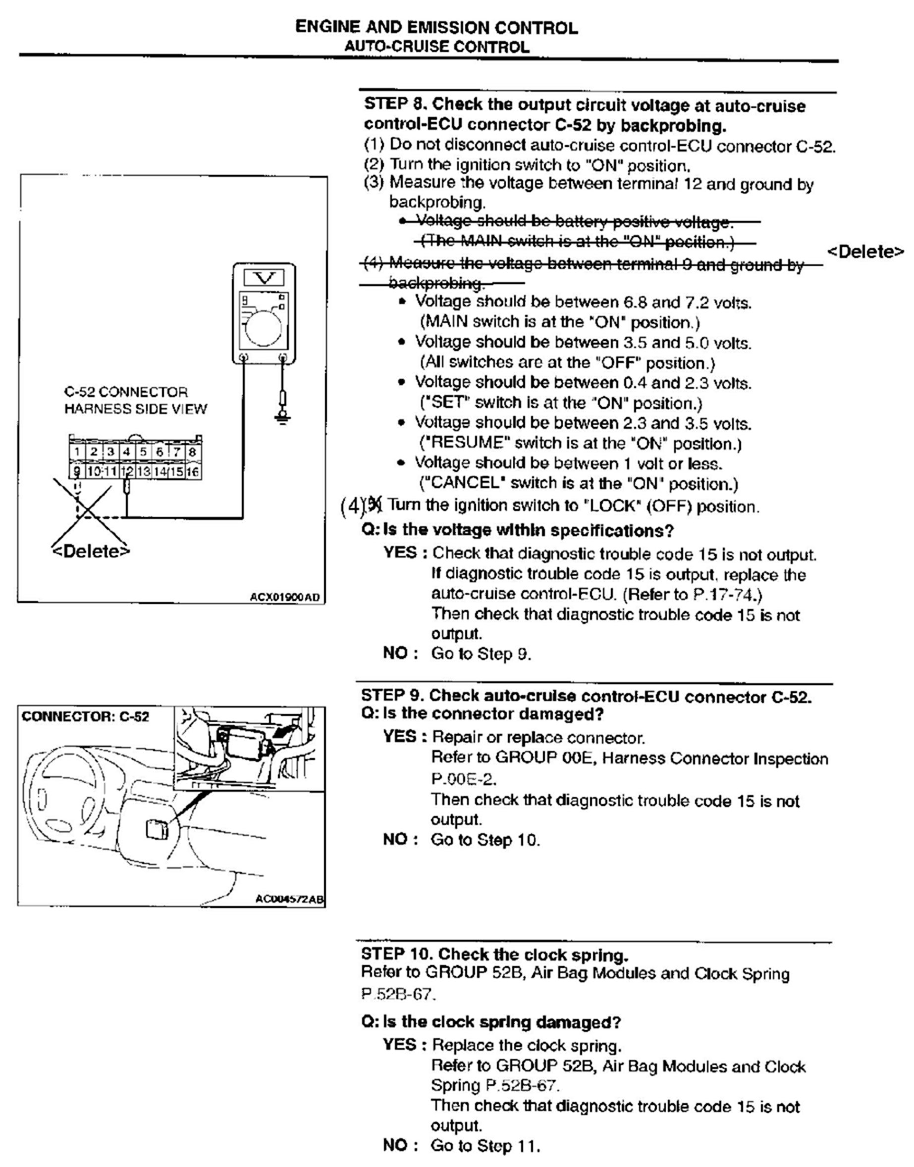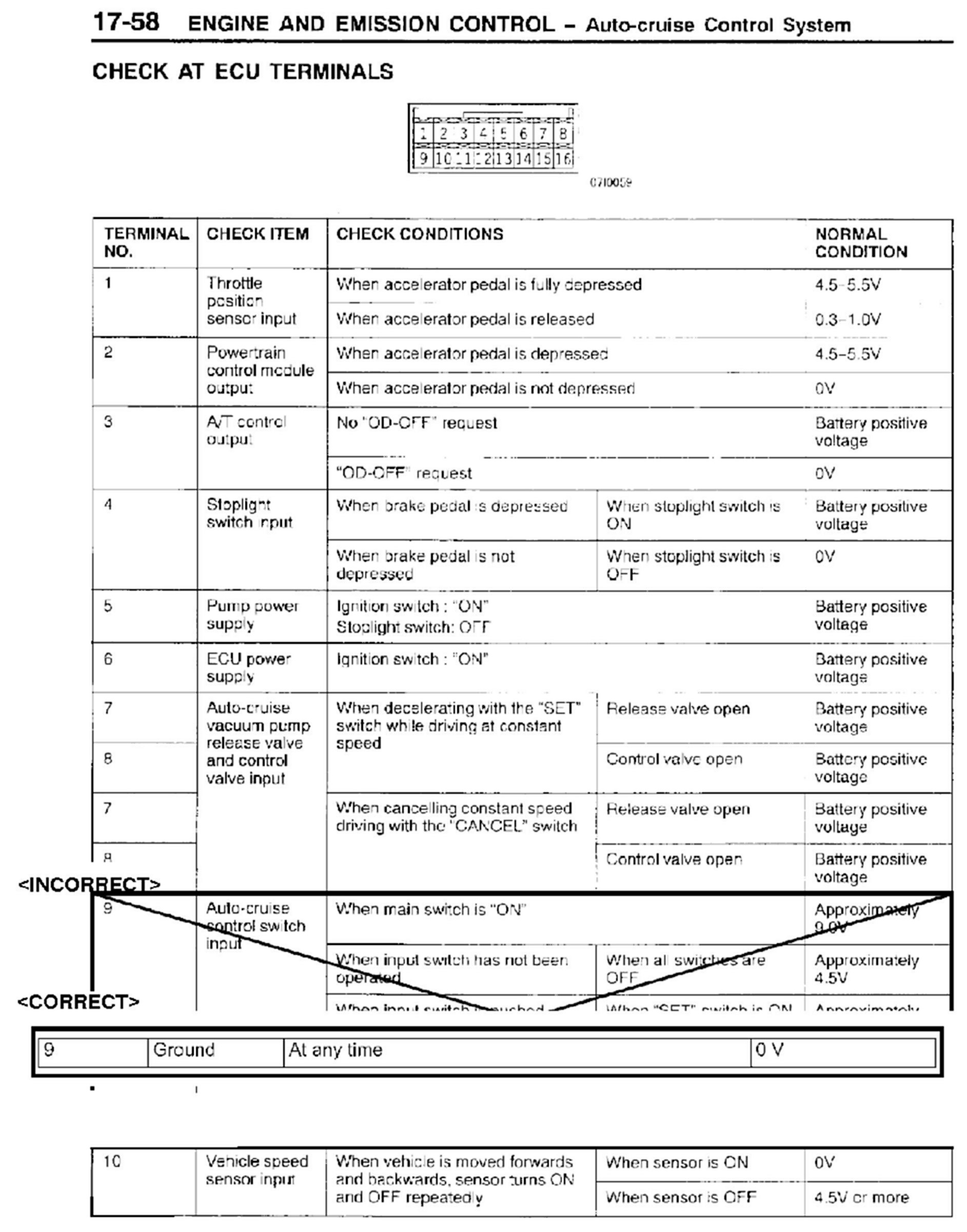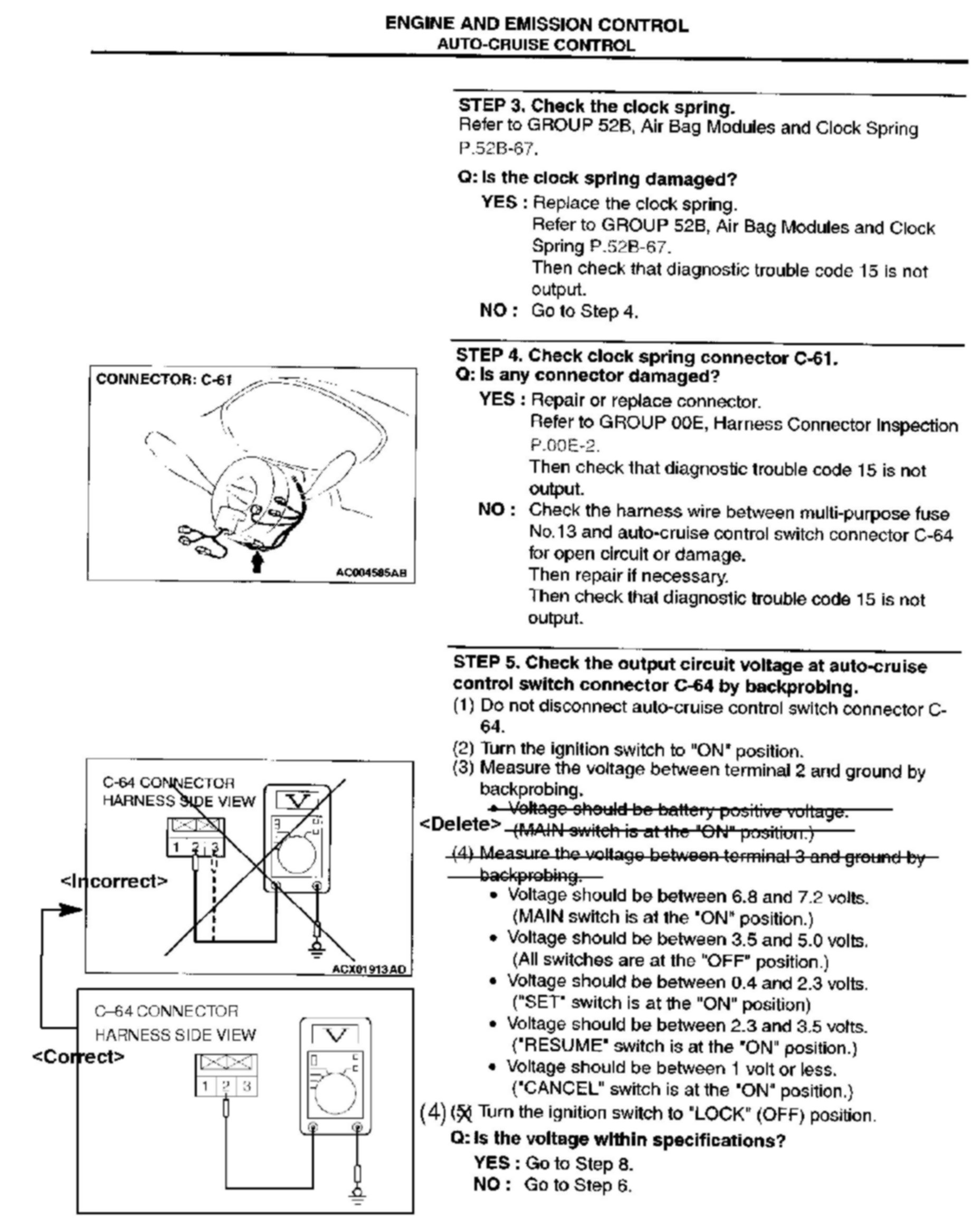 CRUISE CONTROL SYSTEM CHECKS - SERVICE MANUAL REVISION