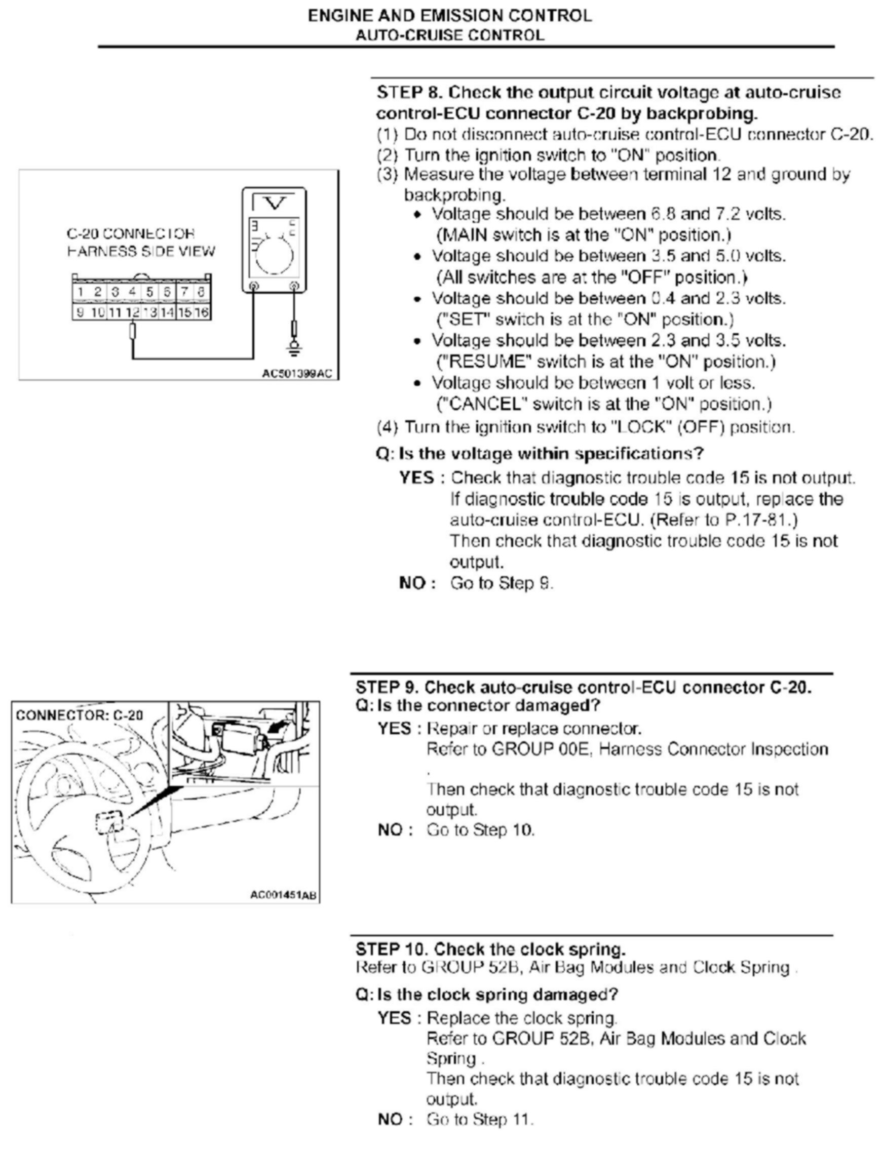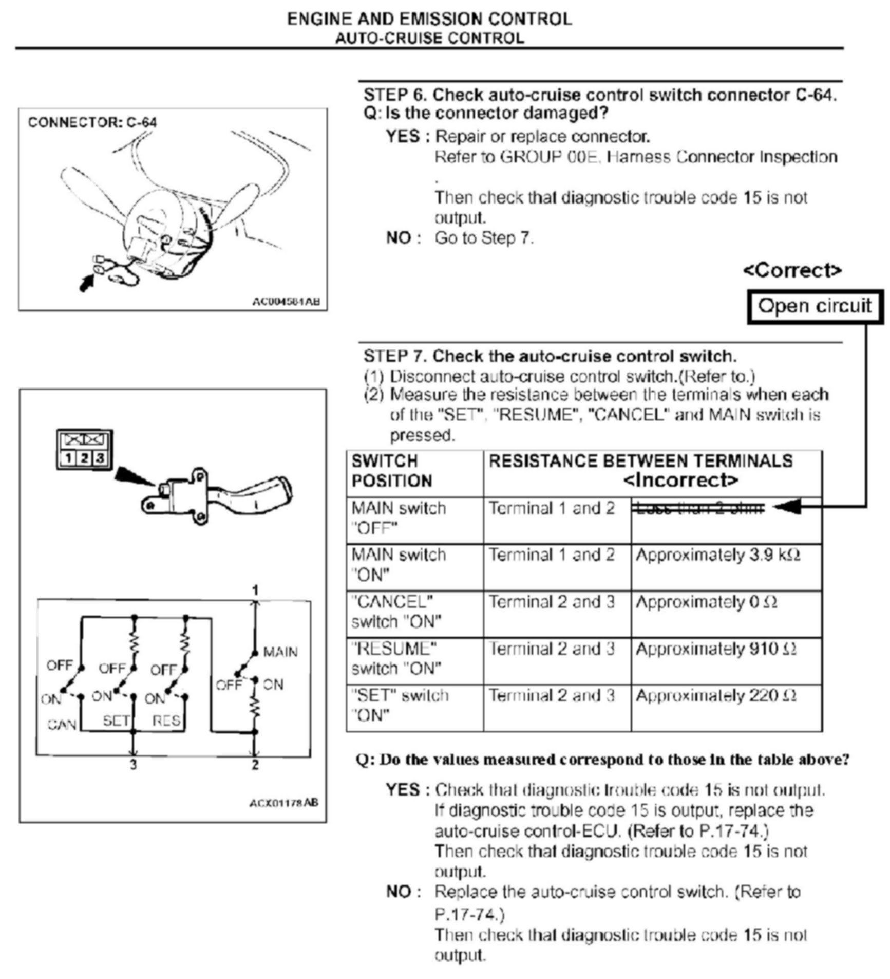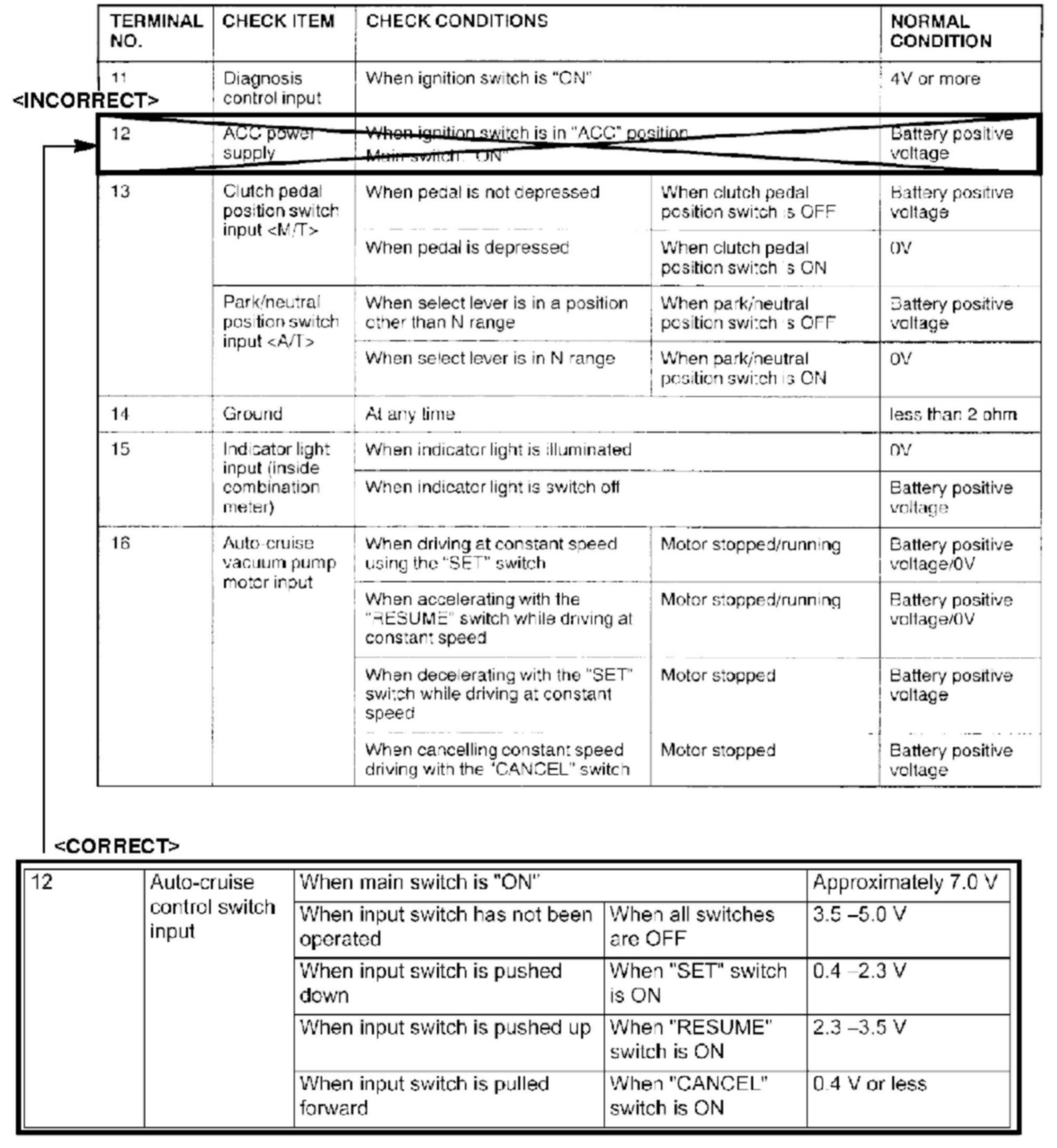 CRUISE CONTROL SYSTEM CHECKS - SERVICE MANUAL REVISION