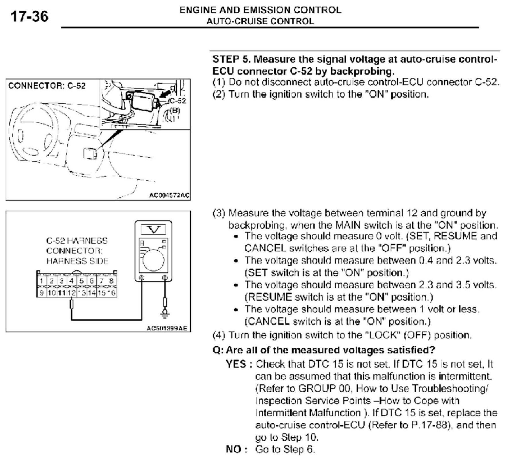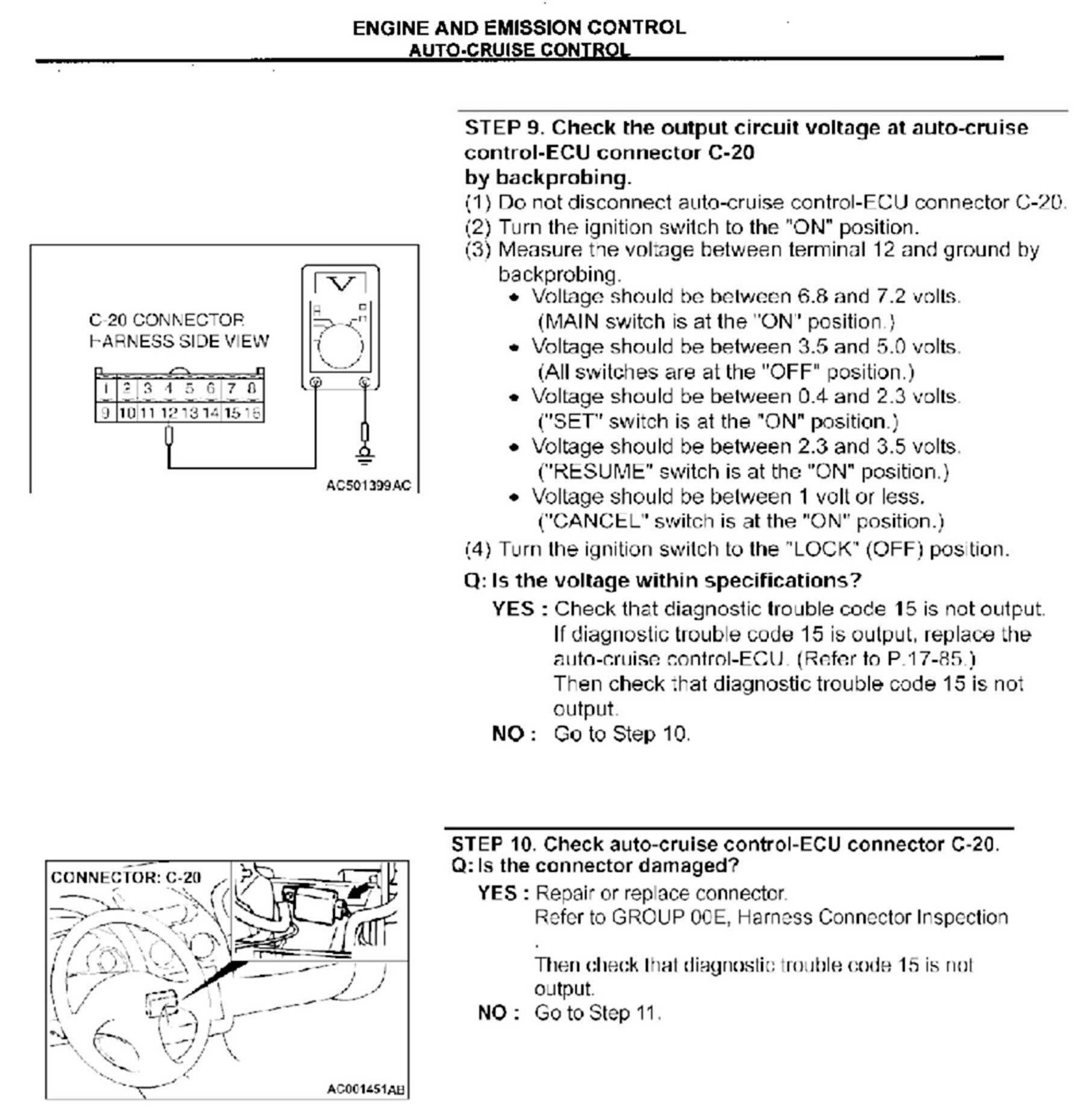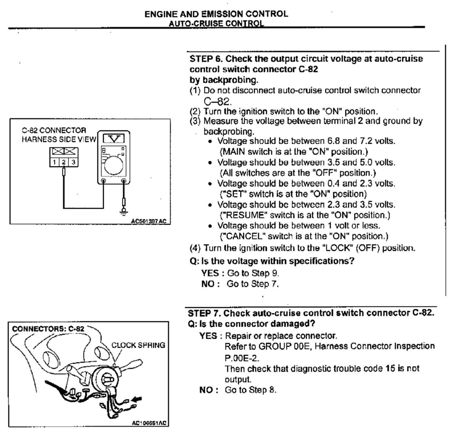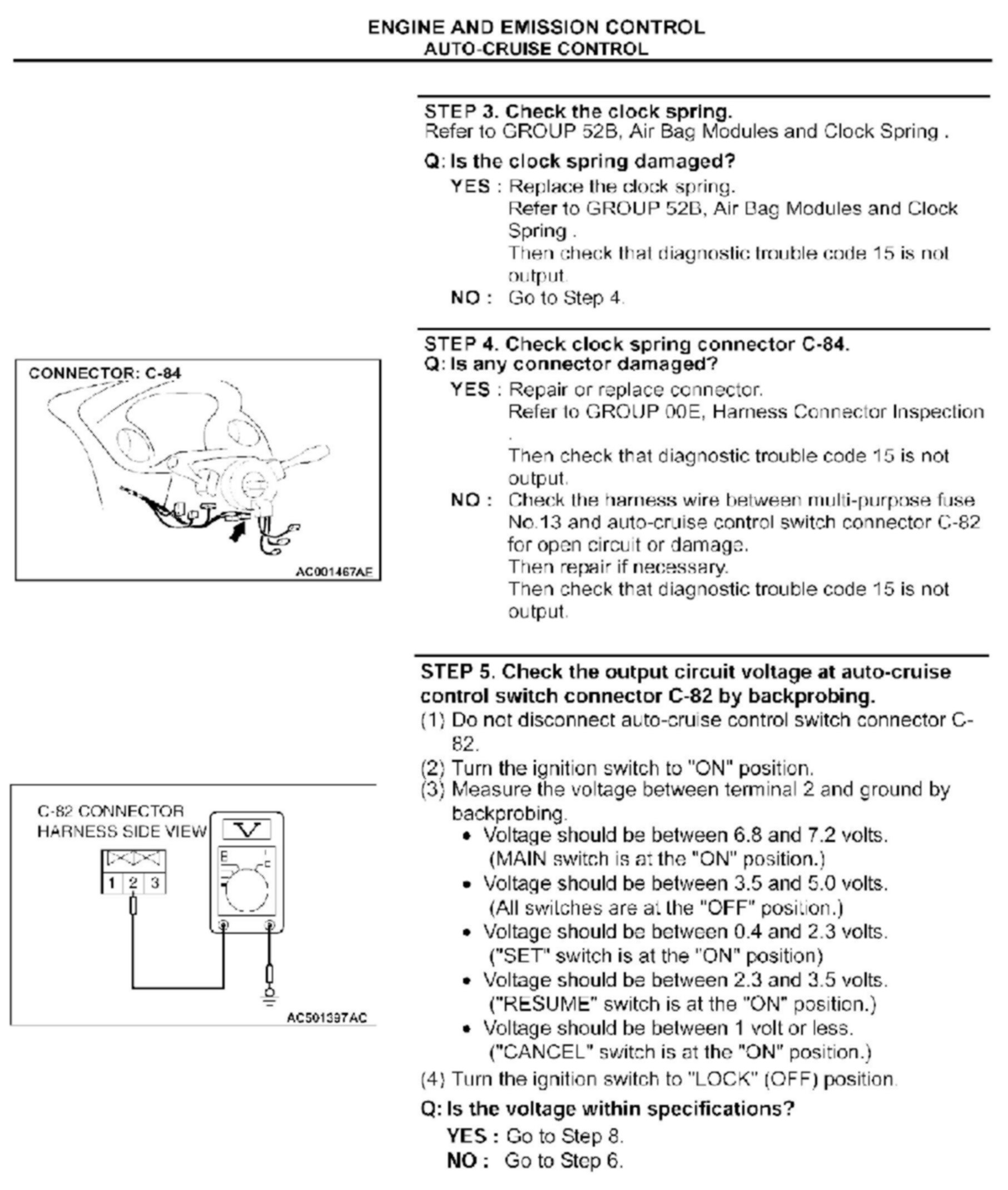 CRUISE CONTROL SYSTEM CHECKS - SERVICE MANUAL REVISION