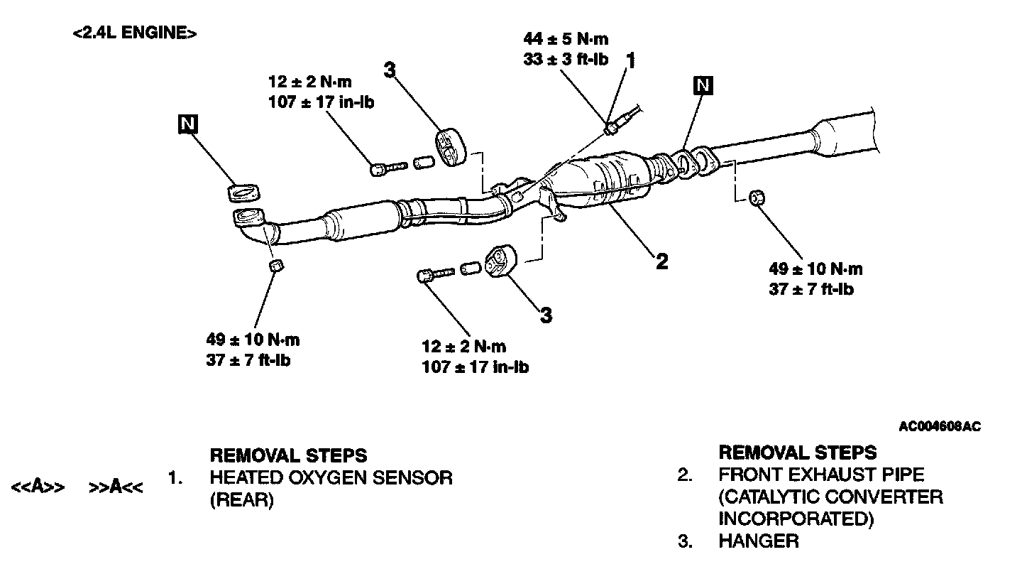 For models with dual catalytic converters contact your local Mitsubishi dealer with the last 8 digits of the VIN for parts information.Removal And Installation: