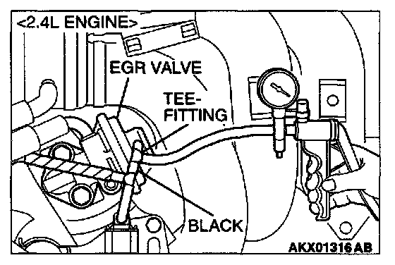 1. Disconnect the vacuum hose (black) from the EGR valve, and then connect a hand vacuum pump via the Tee-fitting.