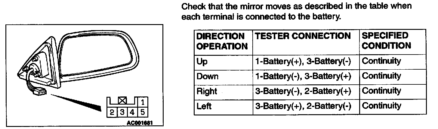 Electric Remote Control Mirror Operation Check:
