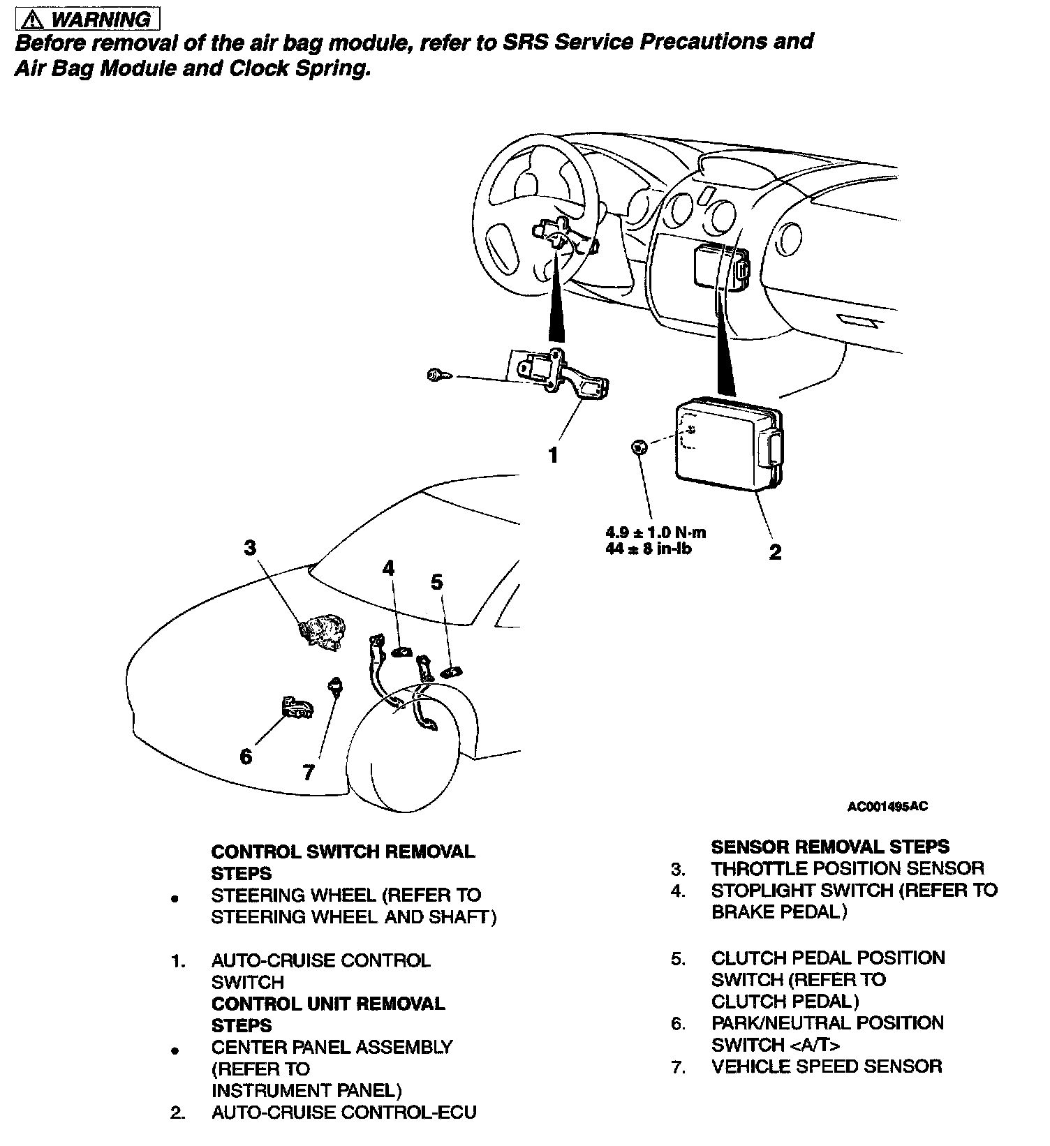 Removal And Installation - Switches, Control Unit And Sensors: