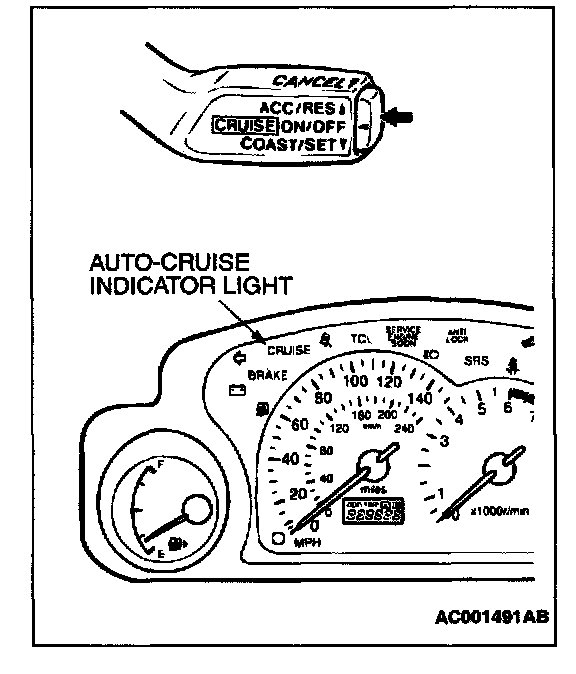 Check that the indicator light within the combination meter illuminates when the main switch is switched "