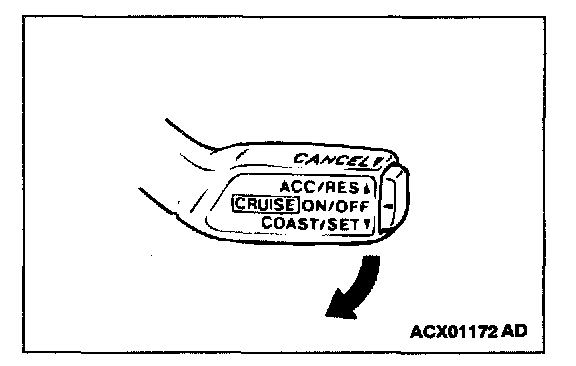 NOTE: When the vehicle speed reaches the low limit [approximately 40 km/h (25 mph)] during deceleration, the auto-cruise control will be cancelled.