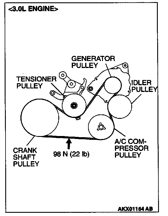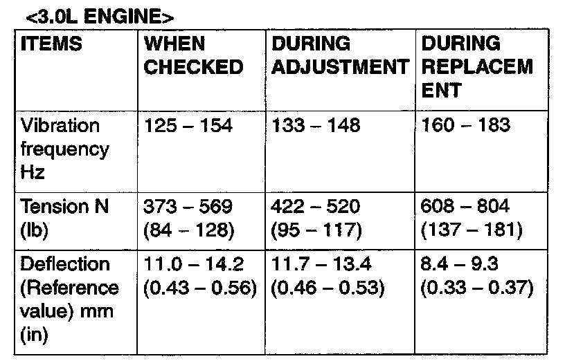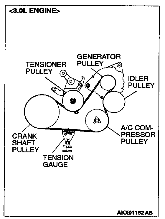DRIVE BELT (FOR GENERATOR, WATER PUMP, A/C COMPRESSOR AND POWER STEERING PUMP) (CHECK CONDITION)Water Pump <2.4L ENGINE>, A/C Compressor <3.0L ENGINE> and Generator Drive Belt Tension Check and Adjustment