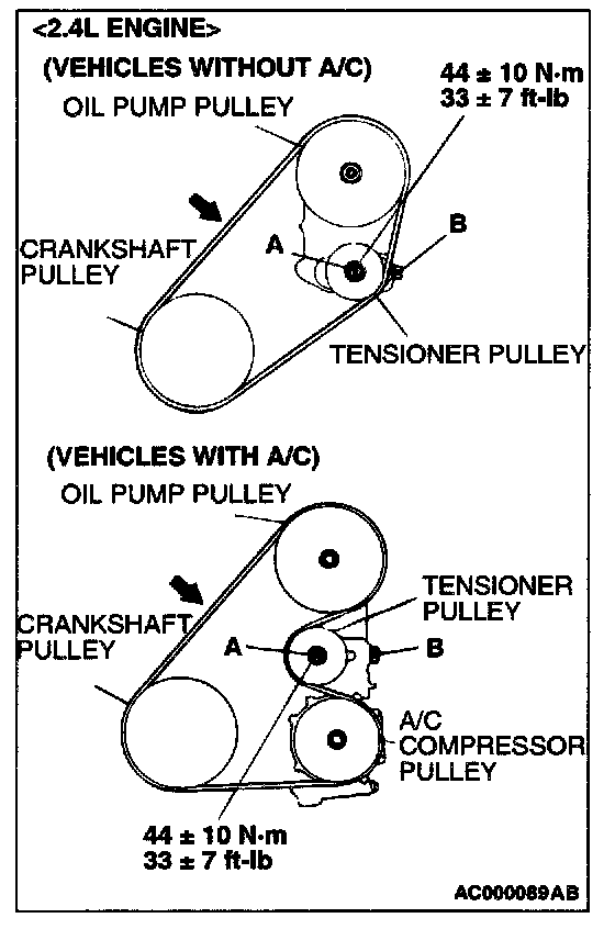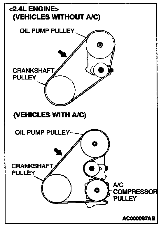 Power Steering Oil Pump and A/C Compressor <2.4L ENGINE> Drive Belt Tension Check and Adjustment