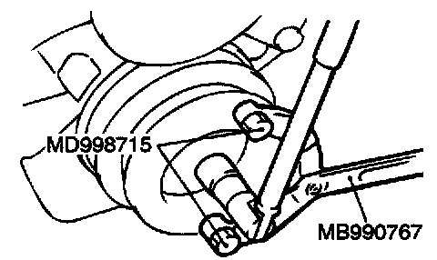 Use special tools MB990767 and MD998715 to remove the crankshaft pulley from the crankshaft.