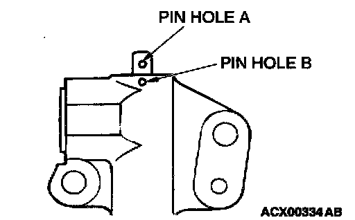 4. Slowly compress the pushrod of the auto-tensioner until pin hole A in the pushrod is aligned with pin hole B in the cylinder.