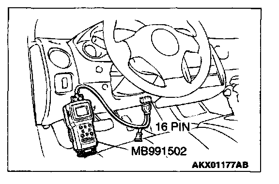 1. Connect scan tool MB991502 to the data link connector.