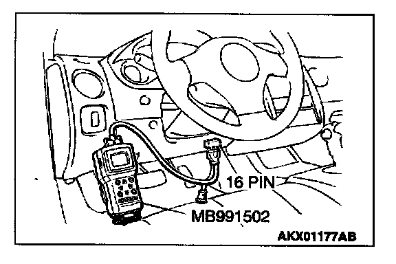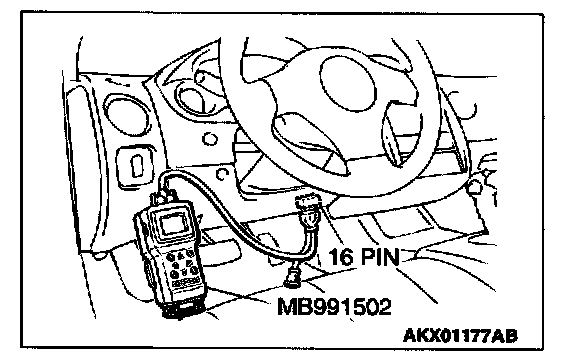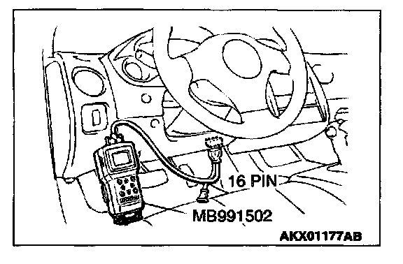 1. Connect scan tool MB991502 to the data link connector.