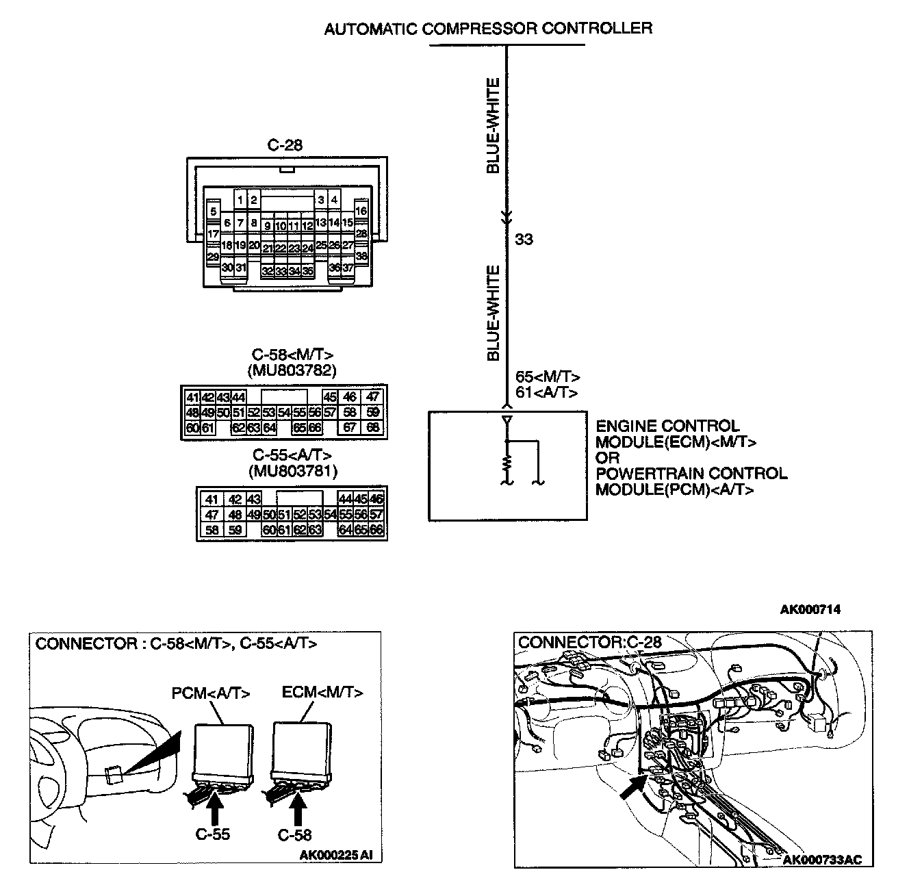 - The automatic compressor-ECU detects how the air conditioning is applying load to the engine, and converts the information to a voltage signal (High voltage=low load, Low voltage=high load). This voltage signal is called "A/C switch 2 signal."