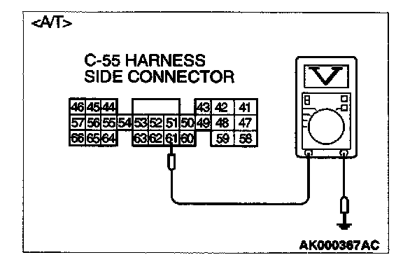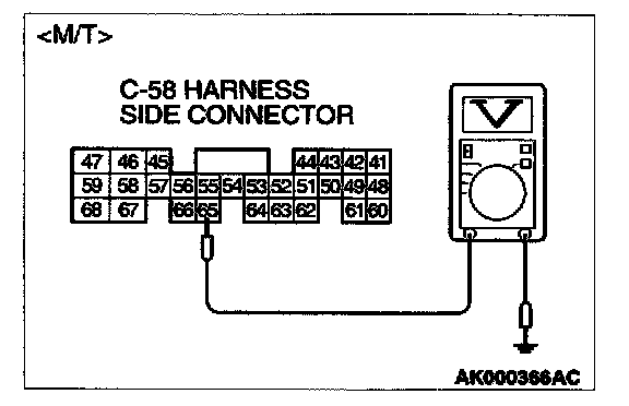 STEP 2. Check the output voltage at ECM harness side connector C-58 M/T or PCM harness side connector C-55 A/T.