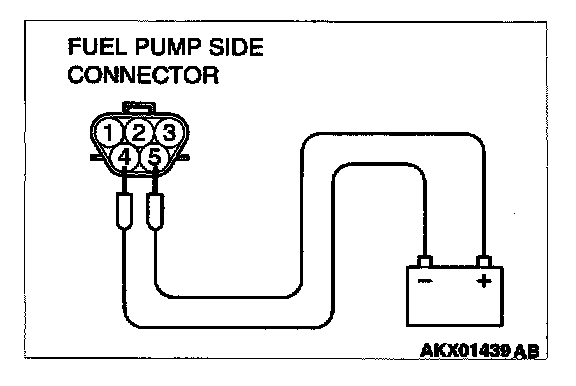 2. Use jumper wires to connect fuel pump connector terminal 5 to the positive battery terminal and terminal 4 to the negative battery terminal.