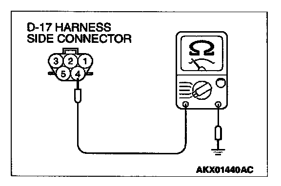 1. Disconnect the connector D-17 and measure at the harness side.