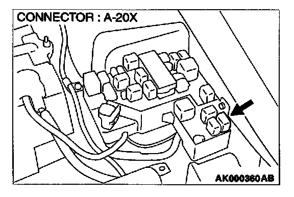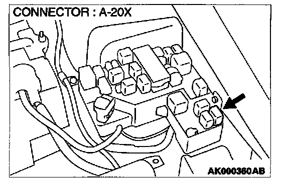 STEP 5. Check connector A-20X at fuel pump relay for damage.