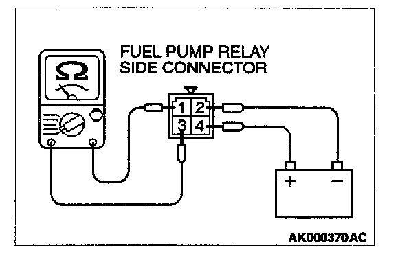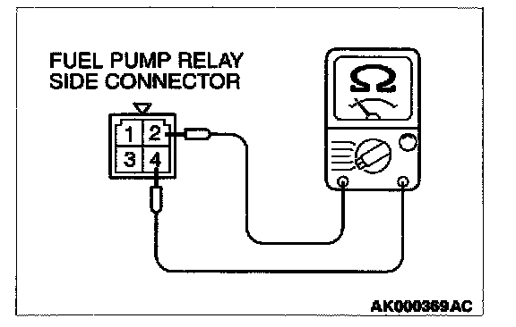 2. Check for continuity between the fuel pump relay terminals 2 and 4.