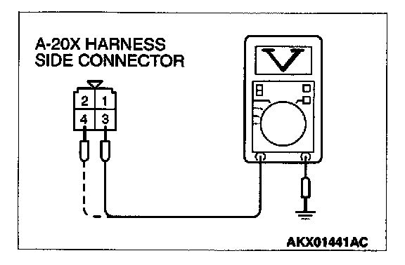 1. Disconnect the connector A-20X and measure at the harness side.