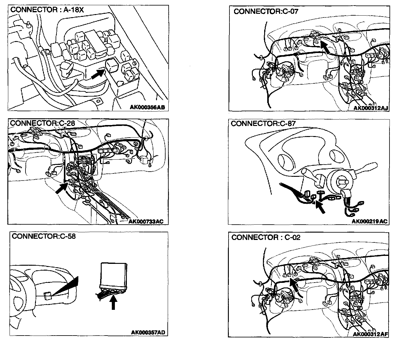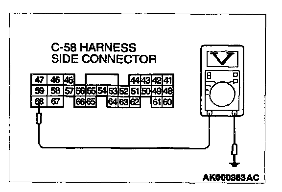 1. Disconnect the connector C-58 and measure at the harness side.