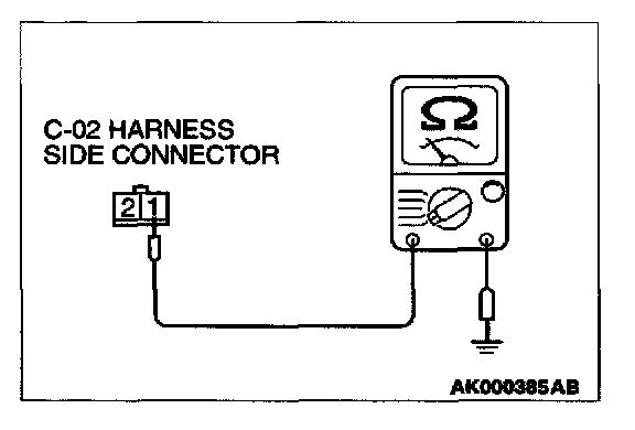 1. Disconnect the connector C-02 and measure at the harness side.