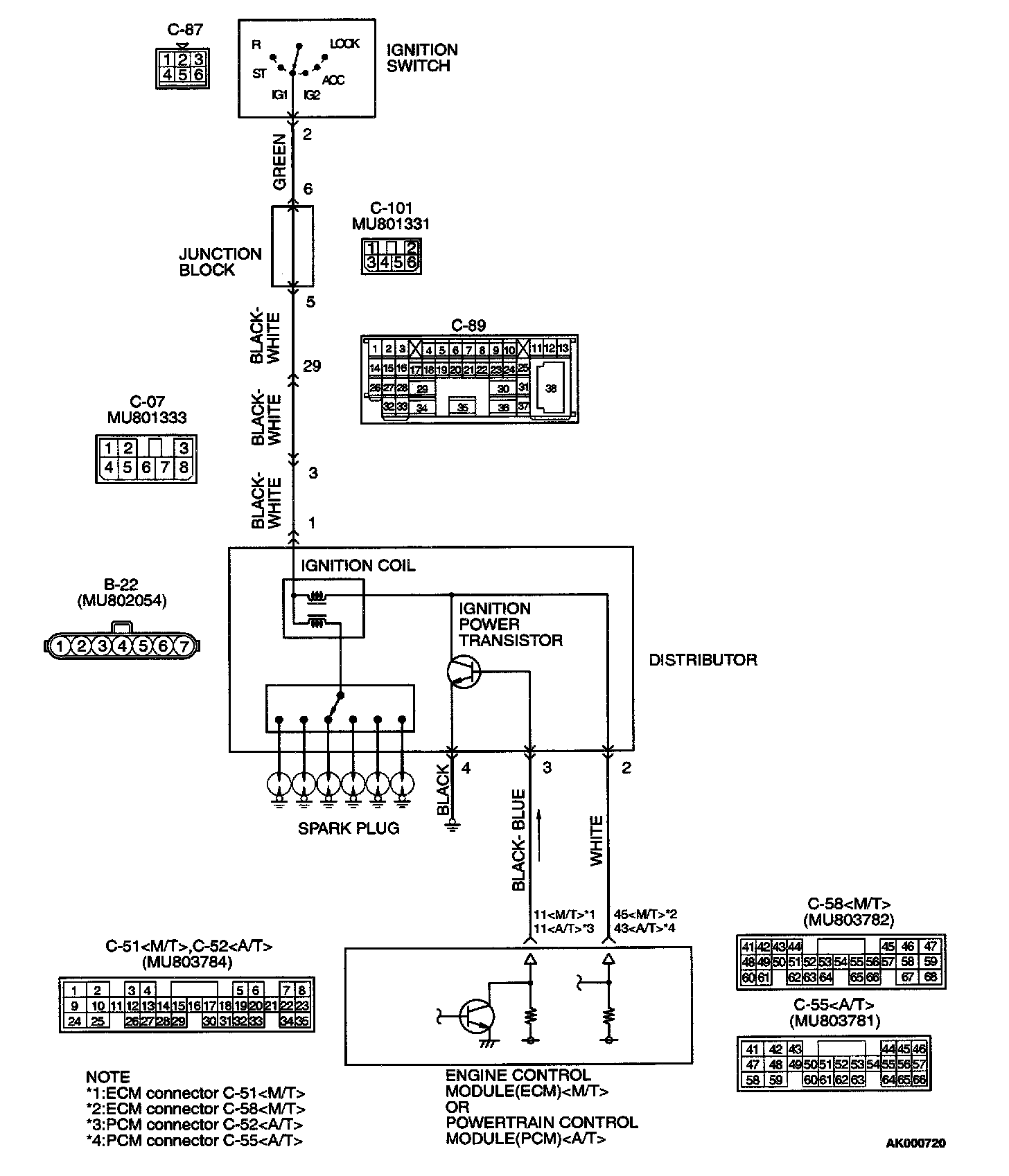 - The battery positive voltage is applied on the ignition coil by the ignition switch-IG.