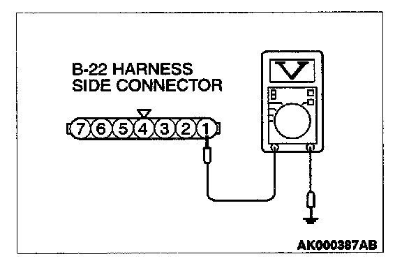 1. Disconnect the connector B-22 and measure at the harness side.