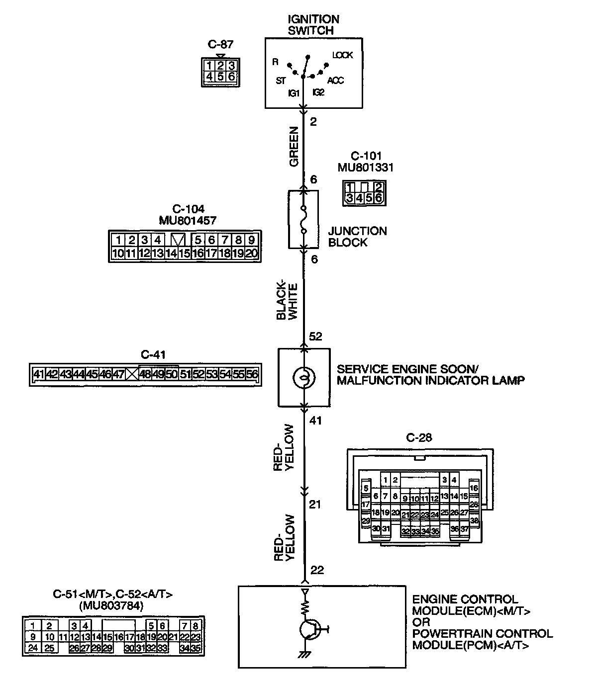 - The service engine soon/malfunction indicator lamp power is supplied from the ignition switch.