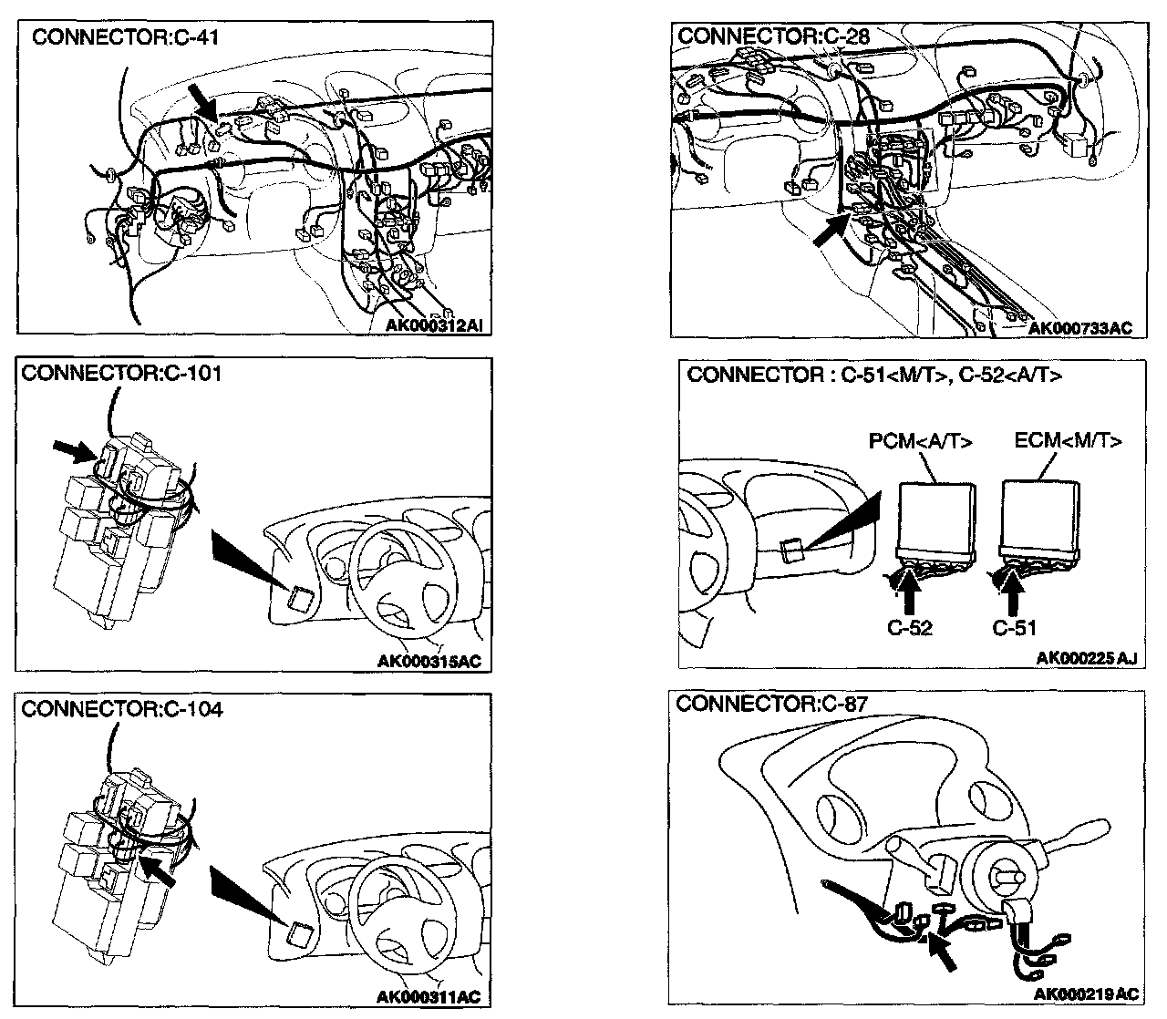 1. Disconnect the connector C-41 and measure at the harness side.