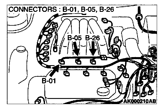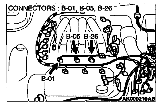 STEP 9. Check connector B-01 or B-05 or B-26 at right bank injector for damage.