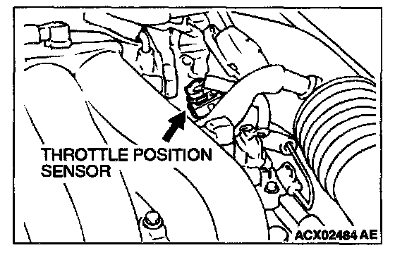 6. Disconnect scan tool MB991502, and connect the throttle position sensor connector. When the scan tool is not used, remove special tool MB991348, and connect the throttle position sensor connector.
