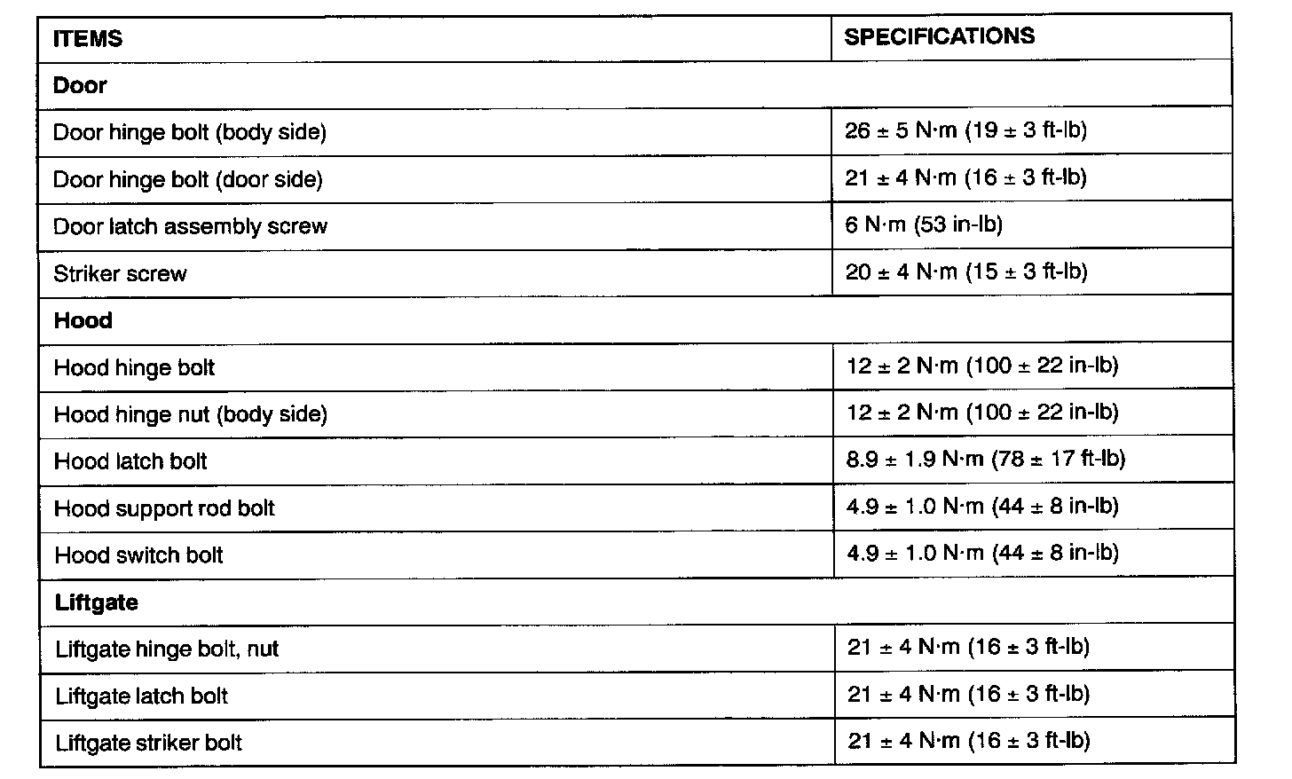 Fastener Tightening Specifications:
