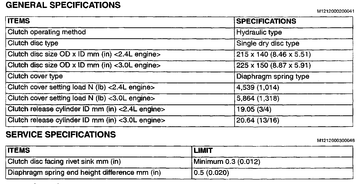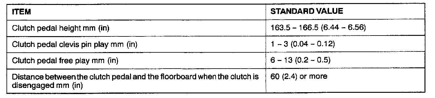 F5M42/F5M51 5-spd M/T, Clutch Standard Values ('00):