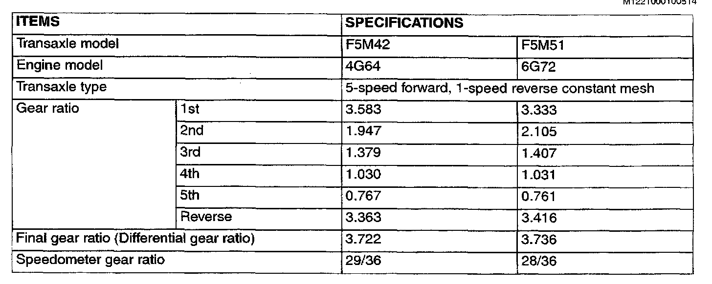 F5M42/F5M51 5-spd M/T, Gear Ratios: