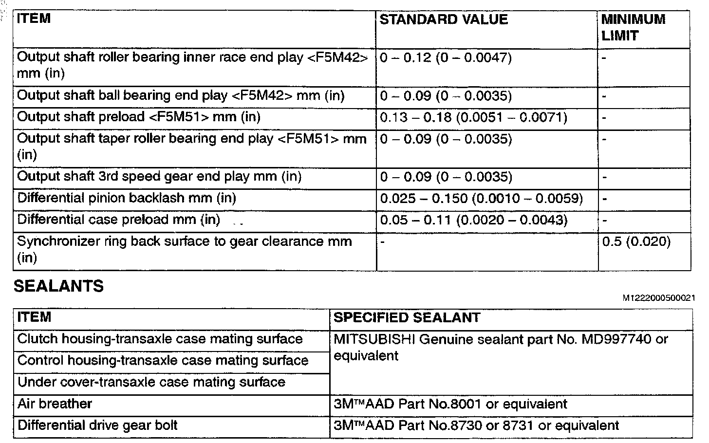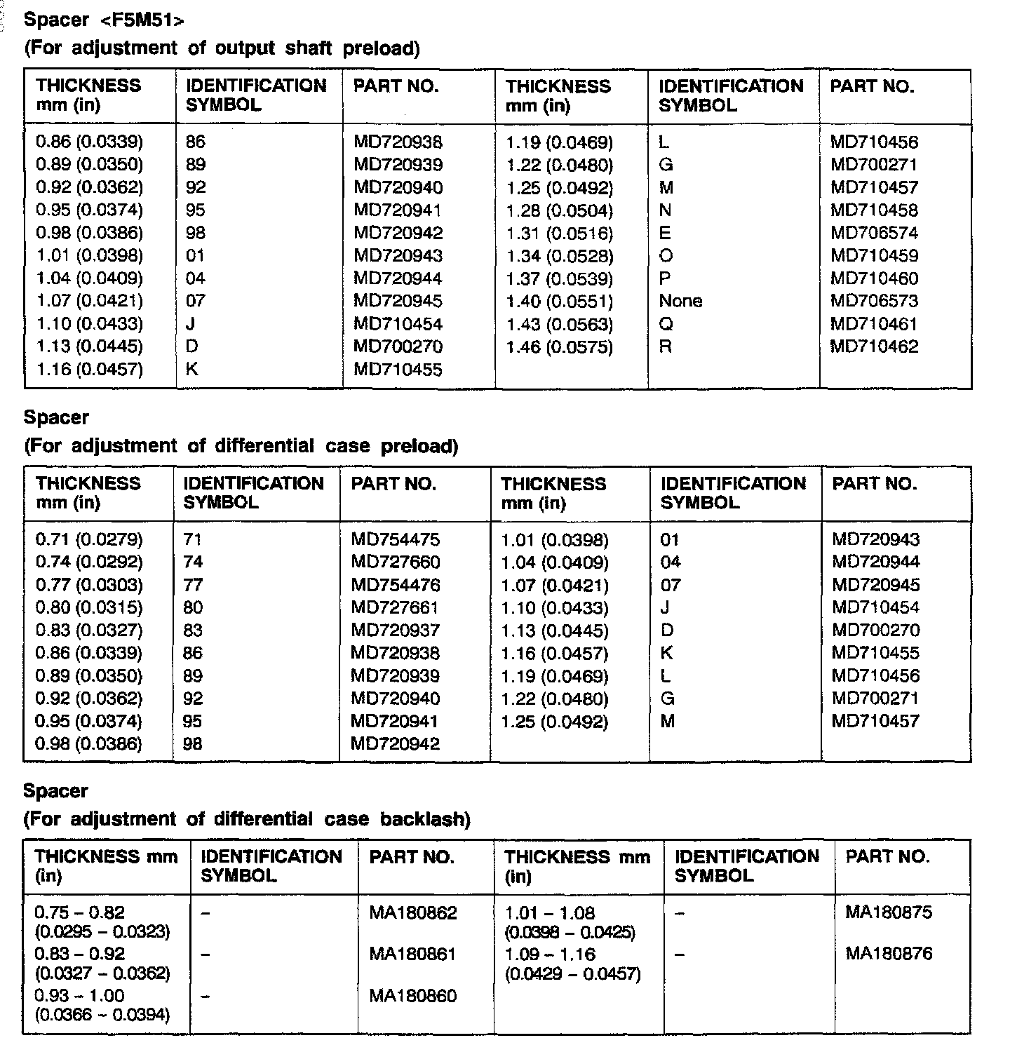 F5M42/F5M51 5-spd M/T, Output Shaft & Differential Preload / Backlash: