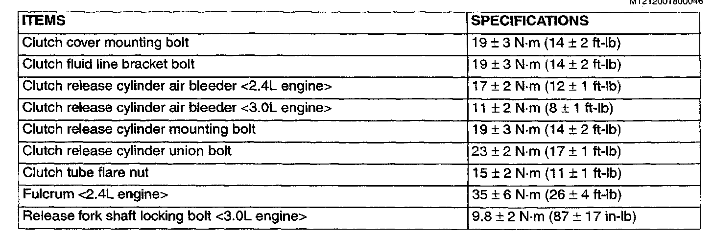 F5M42/F5M51 5-spd M/T, Clutch Torque: