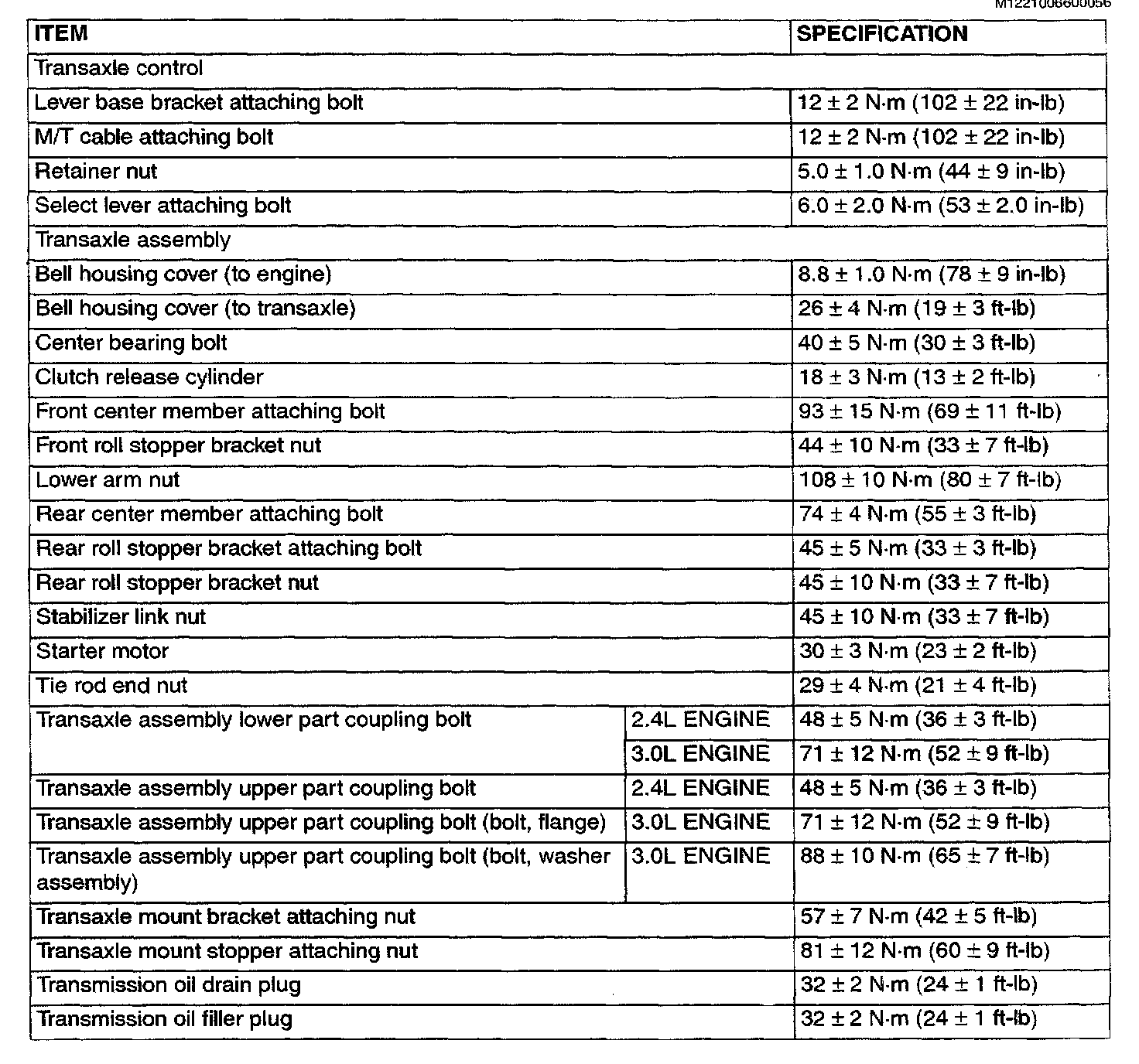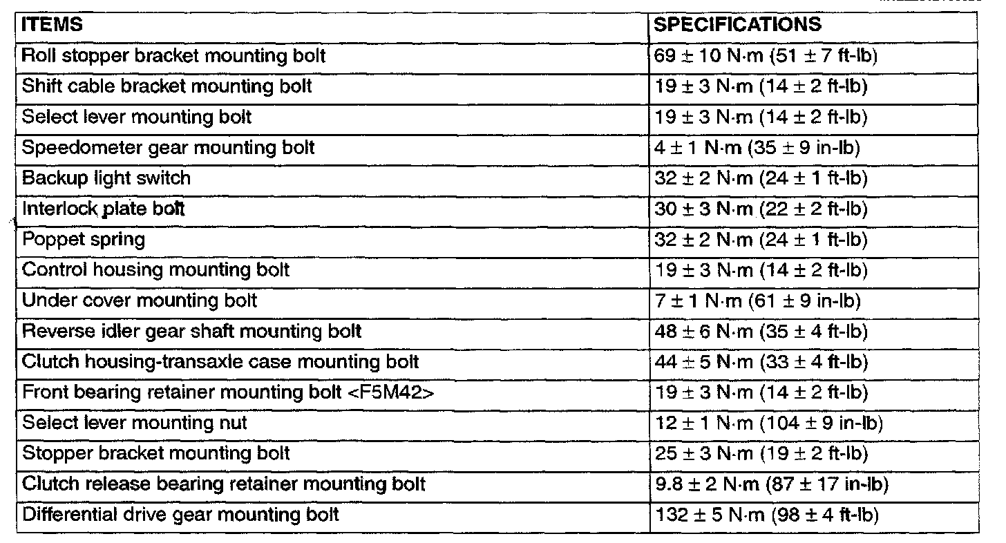 F5M42/F5M51 5-Sad M/To, Transaxle Torque: