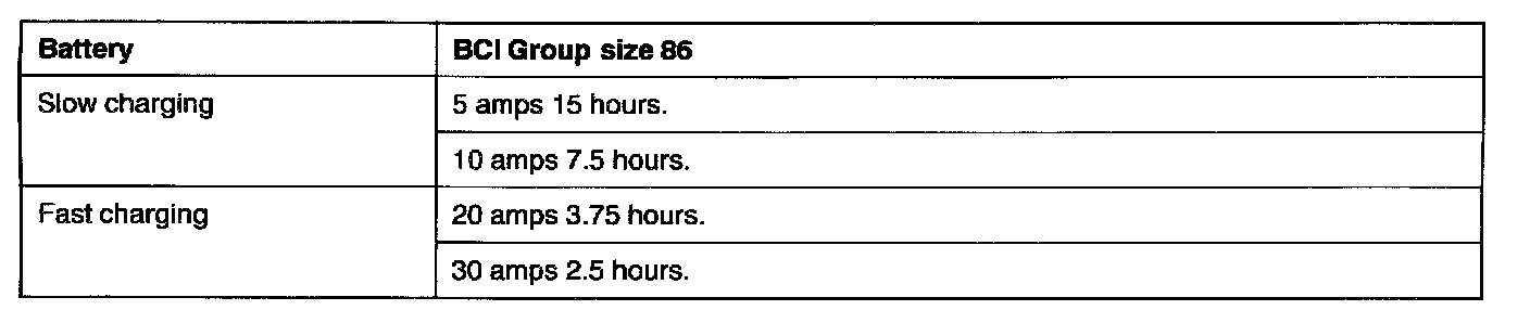 If the test indicator is white, the battery should be charged as outlined below. When the dot appears or when maximum charge shown below is reached, charging should be stopped.