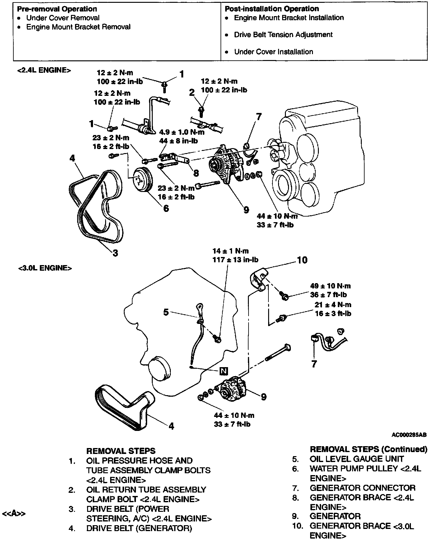 > DRIVE BELT (POWER STEERING, A/C) REMOVAL
